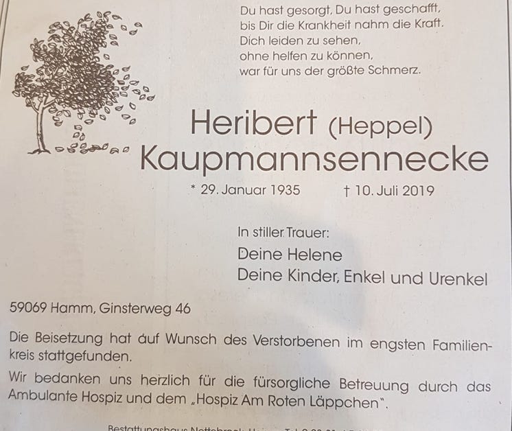 Unser tief empfundenes Mitgefühl gilt seiner Frau Helene, seinen Kindern, Enkeln und Urenkeln.