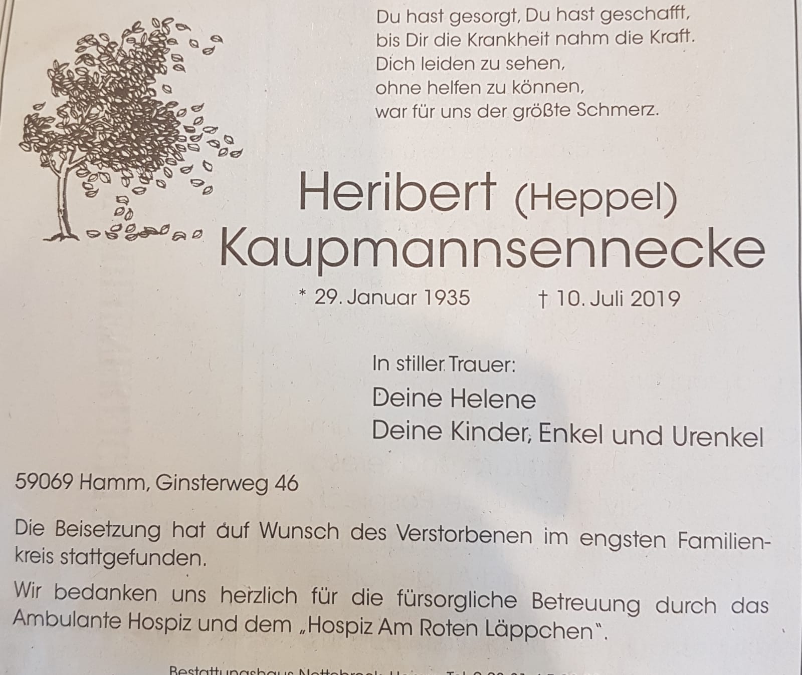 Die Ortsgruppe Hamm trauert um Heribert „Heppel“ Kaupmannsennecke.